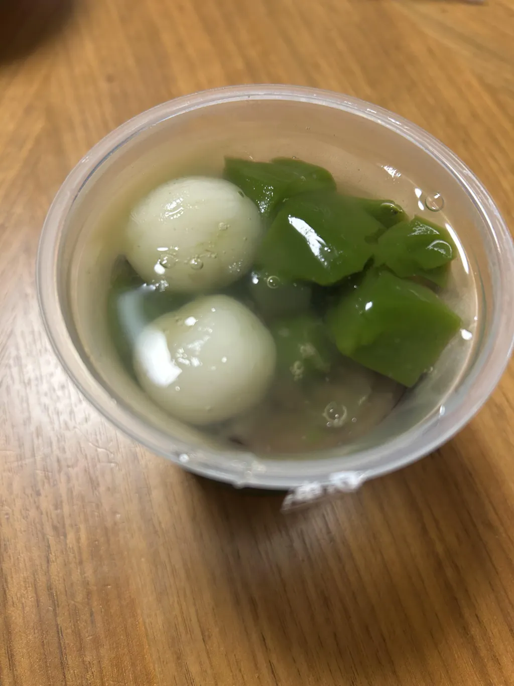 生茶ゼリイ[抹茶]は、ゼリイや白玉、餡が混ざるのを最小限に抑えるため、透明のゼリイでコーティングしております。