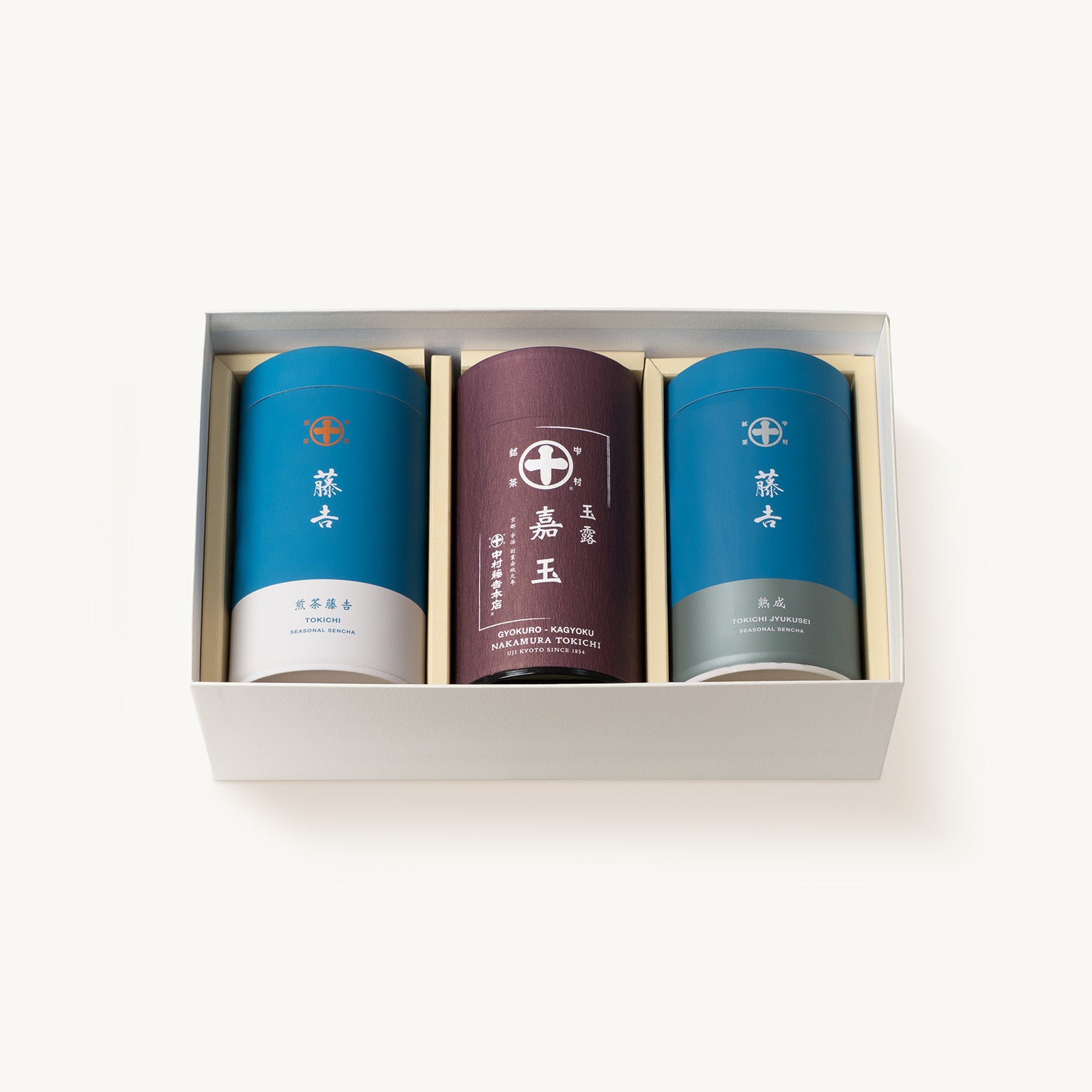 | 内容量 | [煎茶]藤吉 80g×1缶 [煎茶]藤吉熟成 80g×1缶 嘉玉 80g×1缶 |